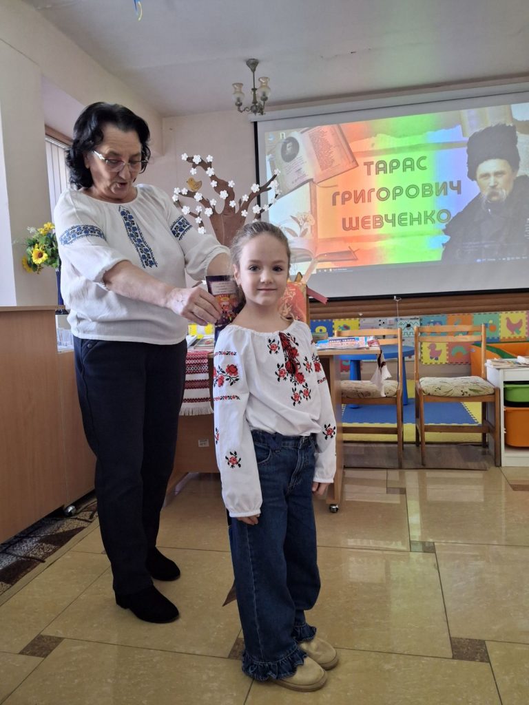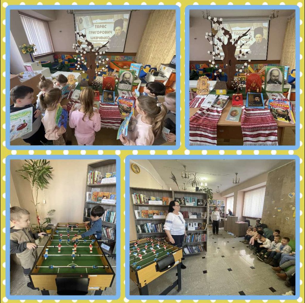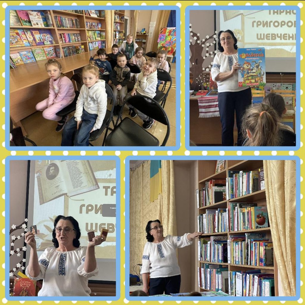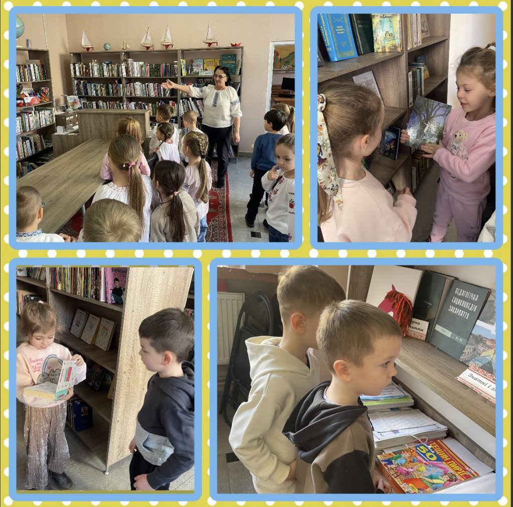 Бібліотекарі підготували для дітей цікаві розповіді про книги, ознайомили дітей із правилами поведінки в бібліотеці та правилами користування книгами, влаштували екскурсію залами бібліотеки, показали презентацію про Т.Шевченка та його творчість. Наші вихованці розповідали вірші про Батьківщину, рідну мову та твори Т.Шевченка. Дякуємо Стариковій Надії Рудольфівні за організацію екскурсії в бібліотеку та батькам, які організували поїздку дітей.