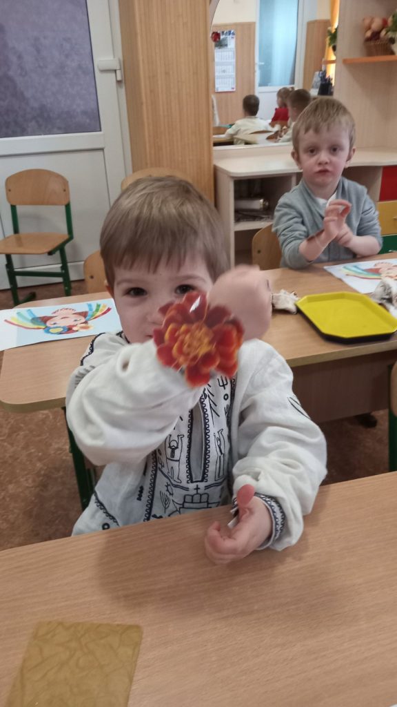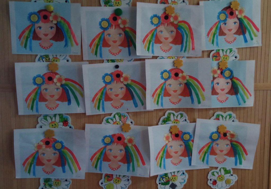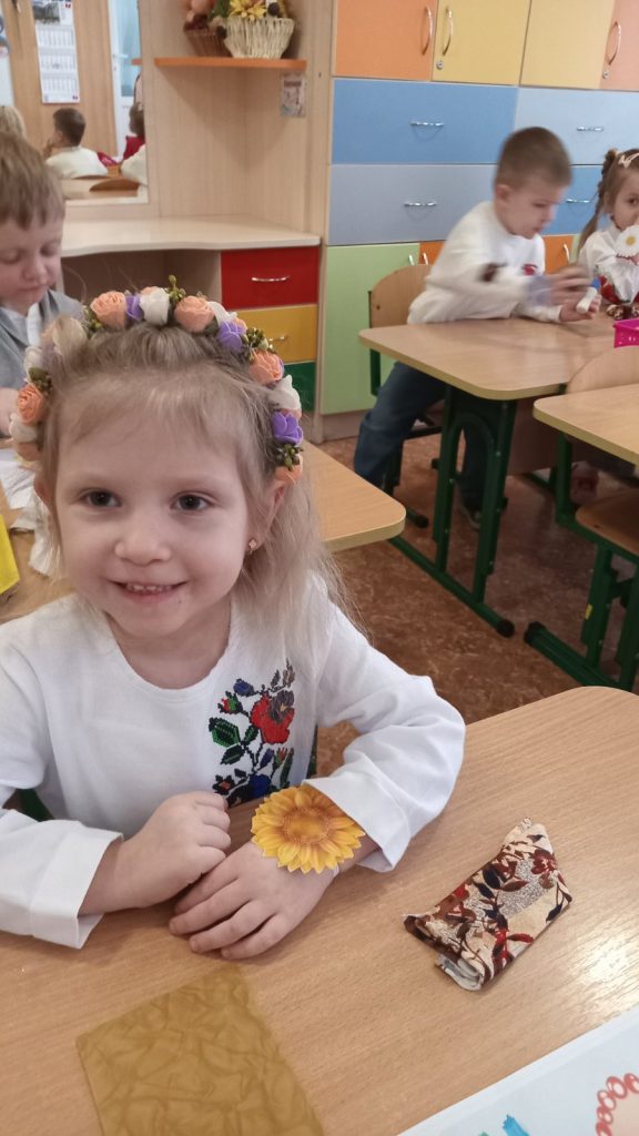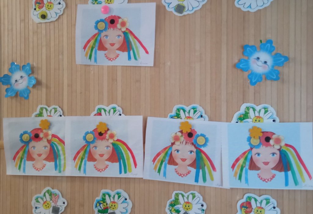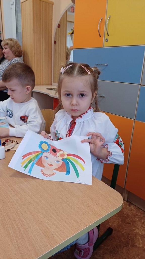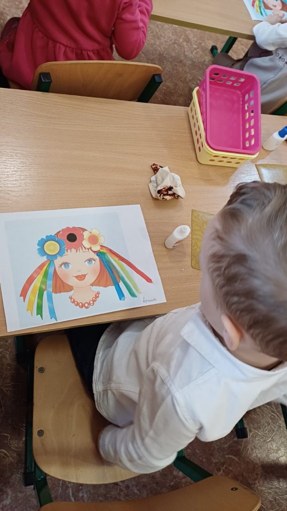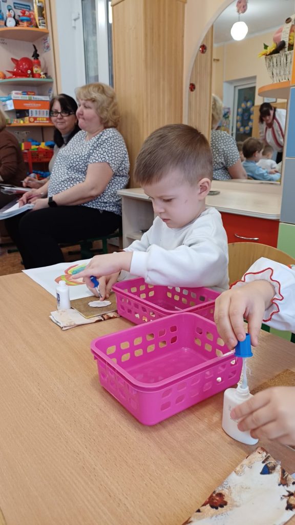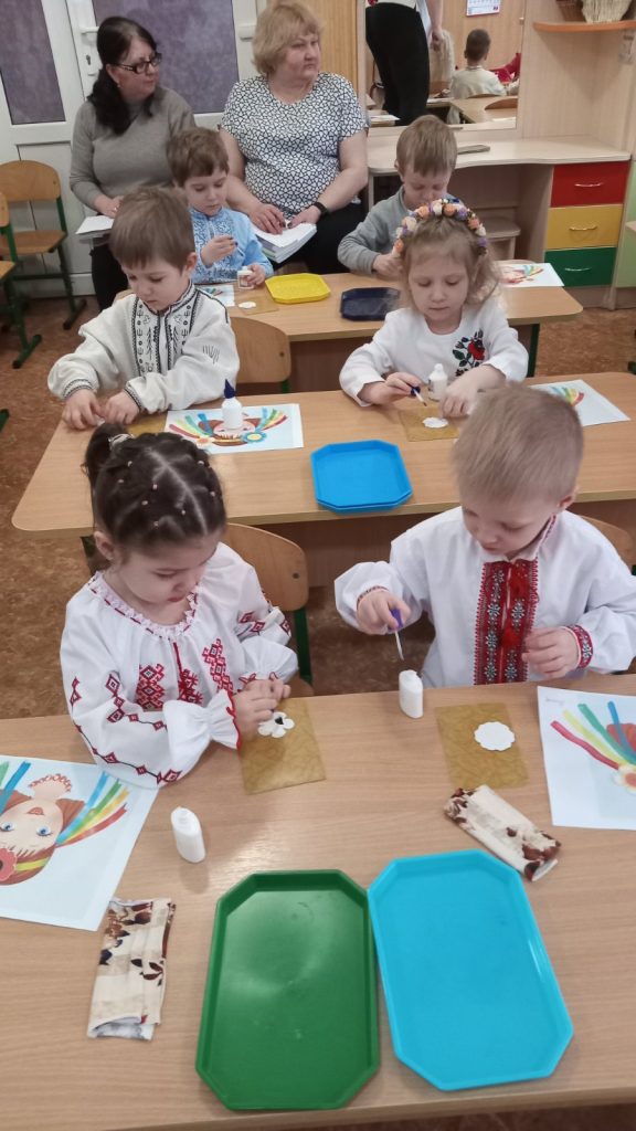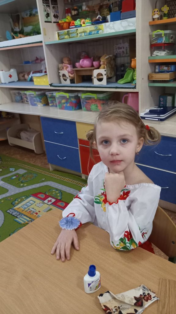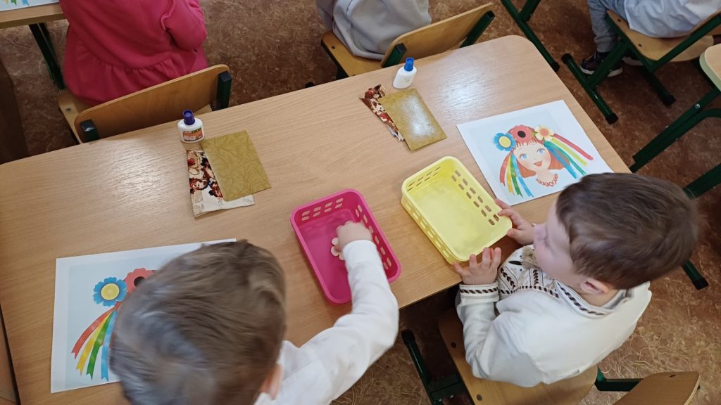 Заняття з аплікаціїї у молодшій групі “Чебурашка”, “Віночок для ляльки Катрусі”.