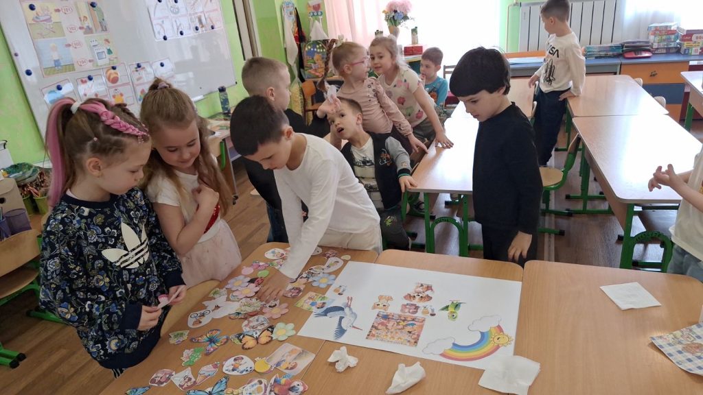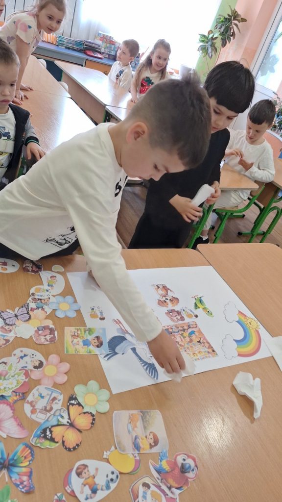 на фото Виготовлення колажу “Подаруй мені радість ” Група Білочка та Веселка